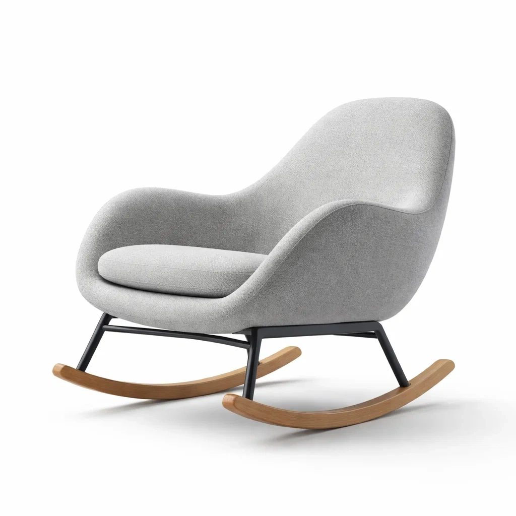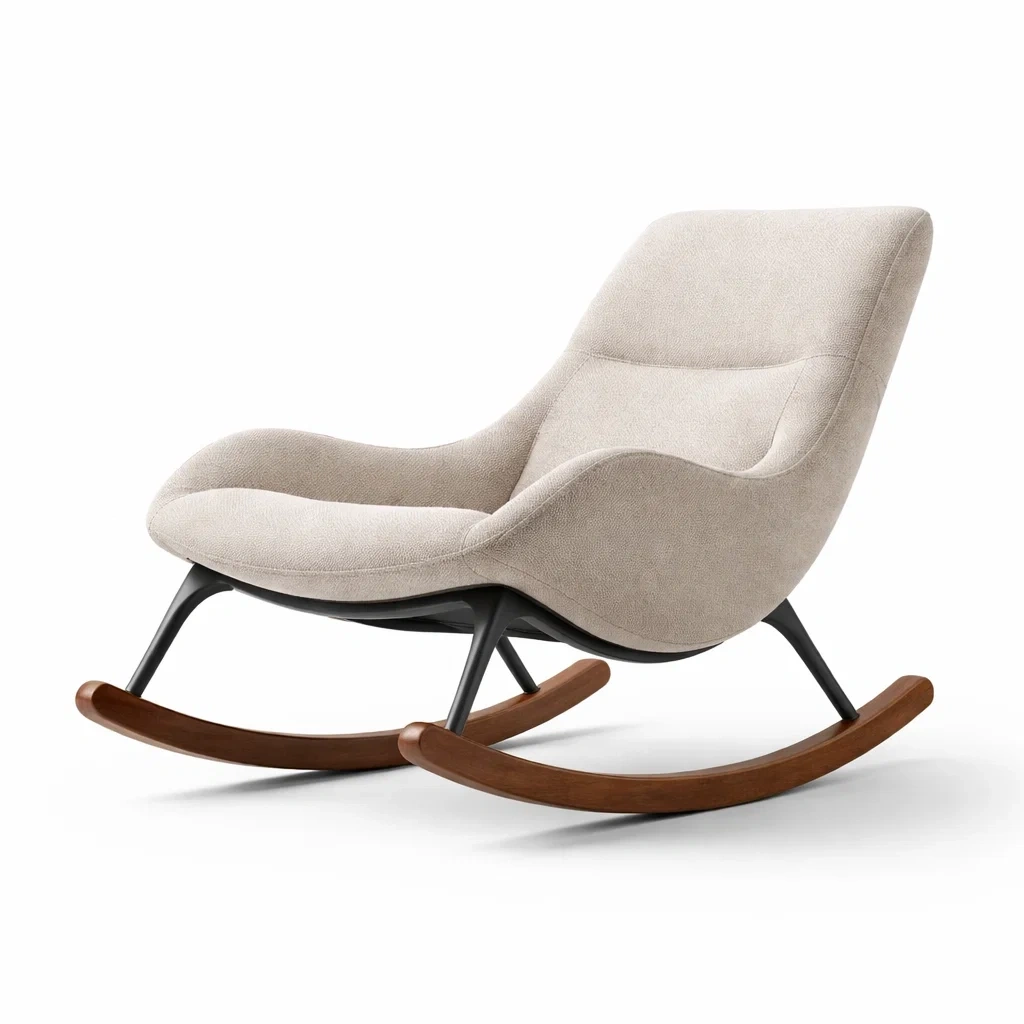 Fauteuil à bascule en tissu avec structure en métal et bois
