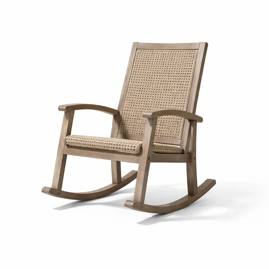 Fauteuil à bascule en bois d’acacia et rotin beige