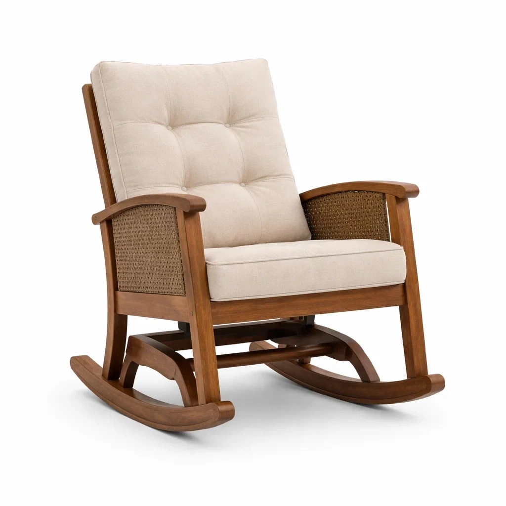 Fauteuil à bascule en bois d’acacia et rotin beige
