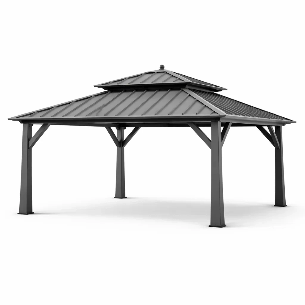 Spécifications : Cette tonnelle dispose d'une structure de soutien à quatre poteaux et d'un toit double.